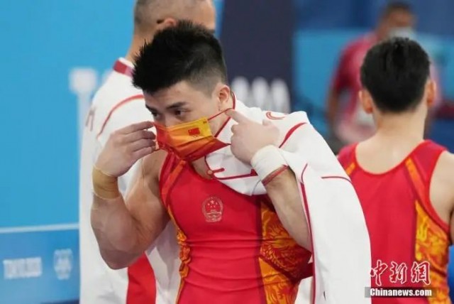 當?shù)貢r間7月21日,各國運動員在位于東京的有明體操體育館進行適應場地訓練。圖為中國選手結束訓練后戴上口罩。中新社記者韓海丹攝