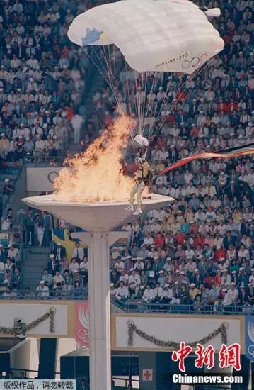 當凱西-弗里曼身穿銀色連體防水服,在傾瀉而下的瀑布中點燃了主火炬臺,熊熊燃燒的火焰由水中徐徐上升,這場“水中燃火”將開幕式推向了高潮,水火在那一刻完成了交融,這一幕也成為了奧運會歷史上的經(jīng)典。