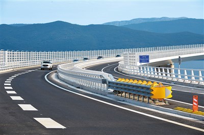 2022年7月27日,克羅地亞科馬爾納,車輛在佩列沙茨大橋上行駛。當(dāng)日是克羅地亞佩列沙茨大橋正式通車的第一天。