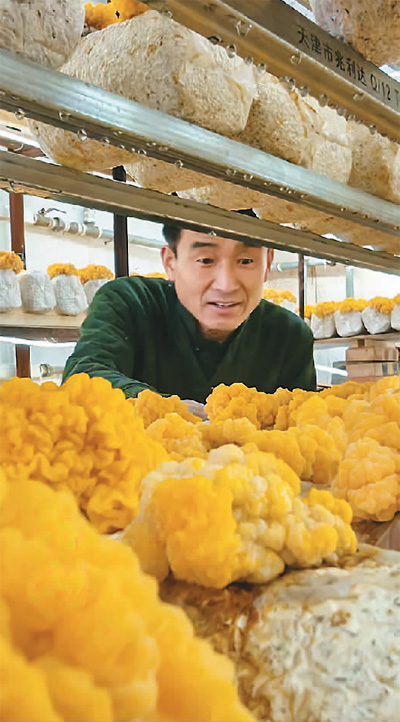 山東省聊城市茌平區(qū)胡屯鎮(zhèn)充分利用村莊閑置資源、空閑宅基地發(fā)展金耳等特色產(chǎn)業(yè),拓寬群眾增收致富渠道。圖為該鎮(zhèn)胡屯新村村民在查看金耳長(zhǎng)勢(shì)。 |
