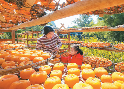 廣西壯族自治區(qū)恭城瑤族自治縣積極推進(jìn)農(nóng)旅融合,發(fā)展壯大月柿特色產(chǎn)業(yè),目前全縣月柿種植面積約22萬(wàn)畝,“月柿”特色鄉(xiāng)村旅游景點(diǎn)20多個(gè),吸引眾多游客前來(lái)觀光游覽。圖為游客在該縣蓮花鎮(zhèn)紅巖村體驗(yàn)晾曬月柿柿餅。 |