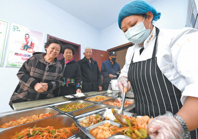??河北省張家口市懷來縣沙城鎮(zhèn)嘉馨園社區(qū)老年餐廳為老人提供就餐服務(wù)。孫慧軍攝(影像中國)