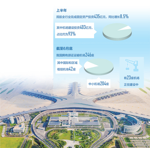 今年上半年,民航全行業(yè)完成固定資產(chǎn)投資435億元,同比增長8.5%。截至6月底,有23座機(jī)場(chǎng)正在建設(shè)中。從加強(qiáng)樞紐機(jī)場(chǎng)改擴(kuò)建,到加大偏遠(yuǎn)地區(qū)中小機(jī)場(chǎng)建設(shè),布局完善、功能健全的現(xiàn)代化國家機(jī)場(chǎng)體系正在加速形成。