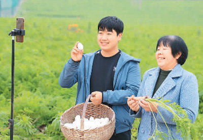 在甘肅省隴南市成縣陳院鎮(zhèn)白馬寺村,網(wǎng)紅主播正在直播帶貨拓展農(nóng)產(chǎn)品線上銷售。 |