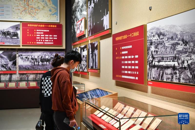 10月16日,在陜西省延安市,人們在延安革命紀(jì)念館參觀。新華社記者 張博文 攝
