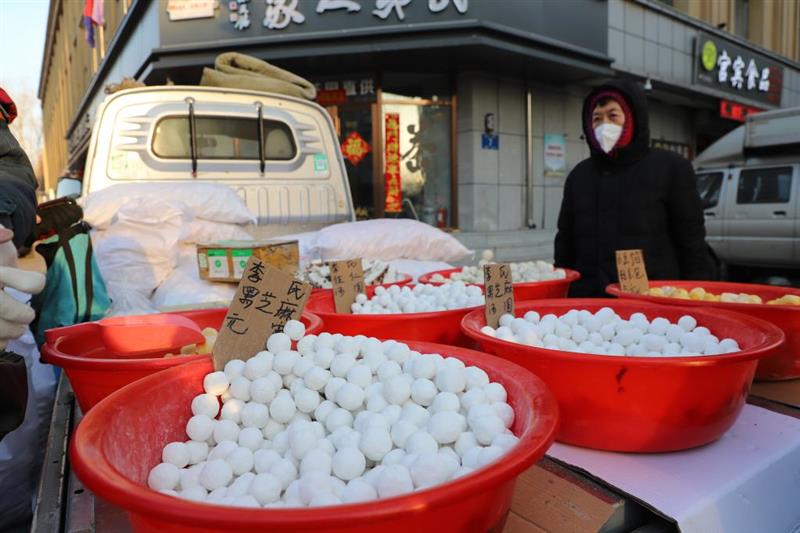 哈爾濱紅專街早市的元宵受到歡迎。新華社記者 戴錦镕 攝