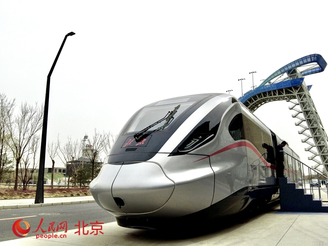 國內(nèi)首列時速200公里市域動車組亮相。人民網(wǎng) 李世奇攝