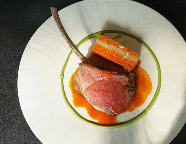 當(dāng)日菜品之一:澳洲羊排、五香毛豆泥和千層胡蘿卜