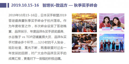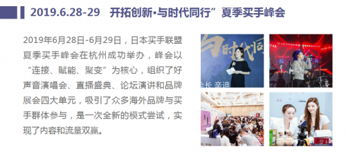 其中日本買手聯(lián)盟作為跨境平臺,一直緊跟時代潮流,第九屆品牌風(fēng)尚盛典通過直播(線上)+品牌展會(線下)二合一的形式,邀請明星助陣,聯(lián)合直播,助力品牌。高效連接品牌與買手的供需需求,精準(zhǔn)品牌曝光、即時銷售轉(zhuǎn)化拓寬長遠(yuǎn)的商業(yè)合作空間,從“網(wǎng)紅-選品-直播-帶貨-爆品”全流程,為企業(yè)打造超級美妝爆品!