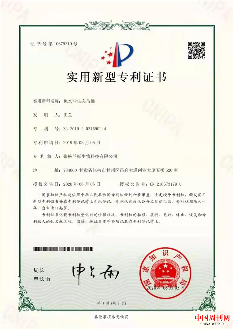 甘肅蘭標(biāo)公司“免水沖生態(tài)馬桶”專利維權(quán)成功獲賠68萬元