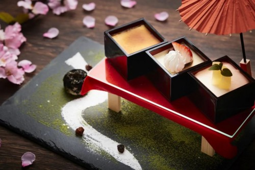 星野青森屋春季限定的賞花甜點一直都備受客人們青睞。今年的賞花甜點以當?shù)孛谰茷樵现谱髁藙e出新意的三款美酒賞花甜點,包括日本酒布丁、使用蘋果酒制作的蘋果酒慕斯、加入了青森葡萄酒的抹茶慕斯,又增添了一份賞花樂趣。
