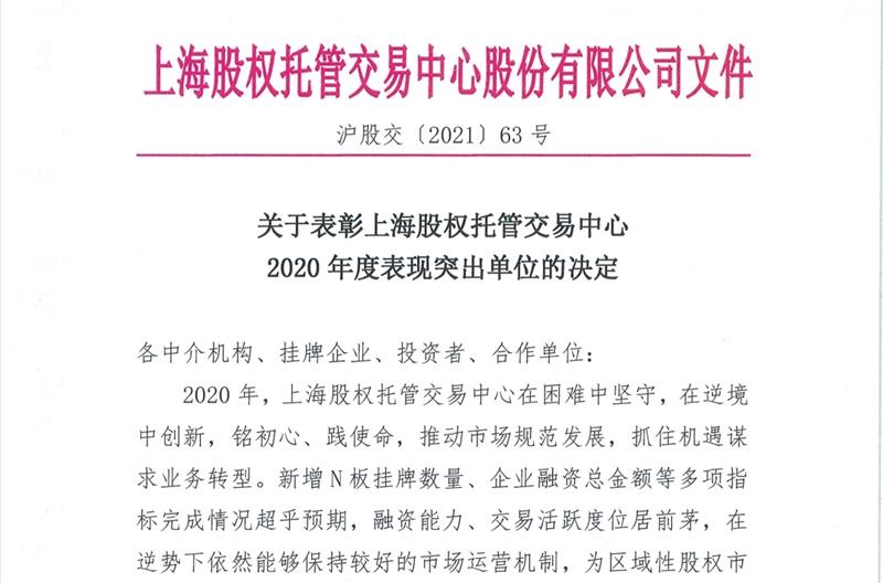 近日,上海邁童文化科技股份有限公司被上海股權托管交易中心授予“2020年度表現(xiàn)突出單位”,公司董事長黃芳被授予“2020年度優(yōu)秀投資者”獎。