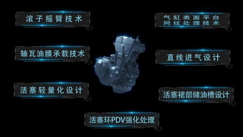 500AC的發(fā)動機(jī)在原有的技術(shù)平臺上迭代升級,同時采用了無極自主開發(fā)的滑動離合器配置。發(fā)動機(jī)運(yùn)動部分,采用行業(yè)先進(jìn)的滾子搖臂、氣缸表面平臺網(wǎng)紋處理、軸瓦油膜承載等技術(shù),以此降低摩擦損失,提升效率,增強(qiáng)耐久。