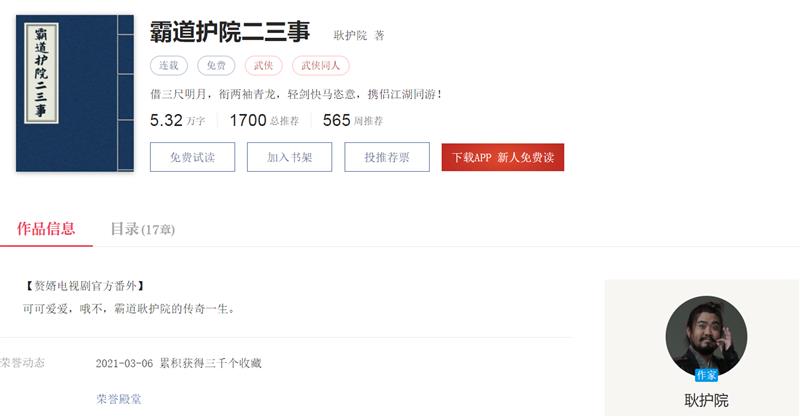 目前,《霸道護(hù)院二三事》正在起點(diǎn)讀書(shū)APP和QQ閱讀持續(xù)連載中,期待耿護(hù)院與他的小說(shuō)能夠持續(xù)為《贅婿》帶來(lái)源源不斷的衍生內(nèi)容與玩法新意。