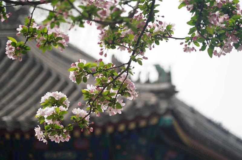 西府海棠:臥聞海棠花,泥污燕支雪?!醺罴延^賞位置:東一區(qū)院落、后罩樓。