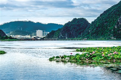 我們一行人從廣西百色高鐵入滇。滇桂黔三省區(qū)交界地帶,群山高低起伏,山勢平緩連綿,幾無高崖險(xiǎn)坡。一入云南,首站即普者黑。高鐵站名并非縣名,候車大廳掛“普者黑”三字,搞不清狀況的,還以為這稱呼是《西游記》或《封神演義》里哪個(gè)瑯?gòu)指5亍V西百色與云南普者黑真近,打個(gè)盹兒就到,出站坐車直奔目的地。