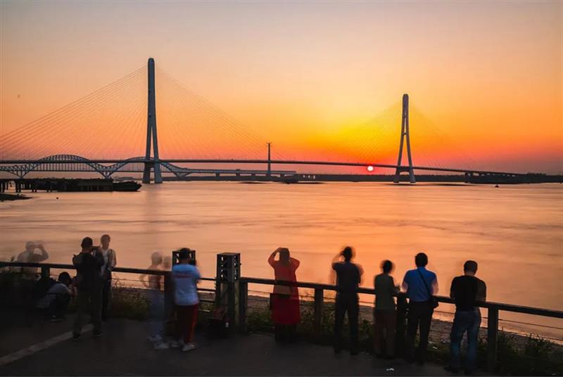 除了網(wǎng)紅燈塔,這里還能看到長江三橋。靜靜的趴在欄桿上,看太陽的余暉灑滿天際,再看它慢慢落下,是一件特別幸福的事。(李曉村 攝)
