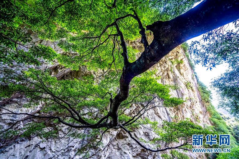 圖為湖北恩施州建始縣高坪鎮(zhèn)地心谷絕壁上的古樹。新華網(wǎng)發(fā) 文林?jǐn)z