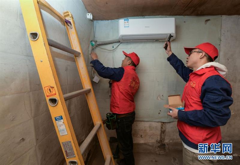 11月23日,志愿者在余國春家中為他免費(fèi)改造用電線路,安裝新開關(guān)。新華社記者 徐昱 攝