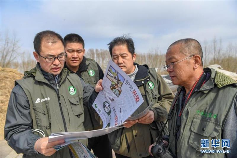 氣溫回暖,草芽剛剛露頭。在吉林省白城市鎮(zhèn)賚縣的濕地邊沿,一隊人一邊緩步行走一邊低聲交談,時而拿起望遠鏡瞭望,時而低頭在手機中記下地理坐標(biāo)。他們就是中國野生動物保護協(xié)會吉林鎮(zhèn)賚護飛隊的隊員。幾百米外棲息著從南方遷徙而來的上萬只各種候鳥,鳥類食物是否充足,人類活動是否會干擾鳥類生活,各種問題時刻牽動著他們的心。