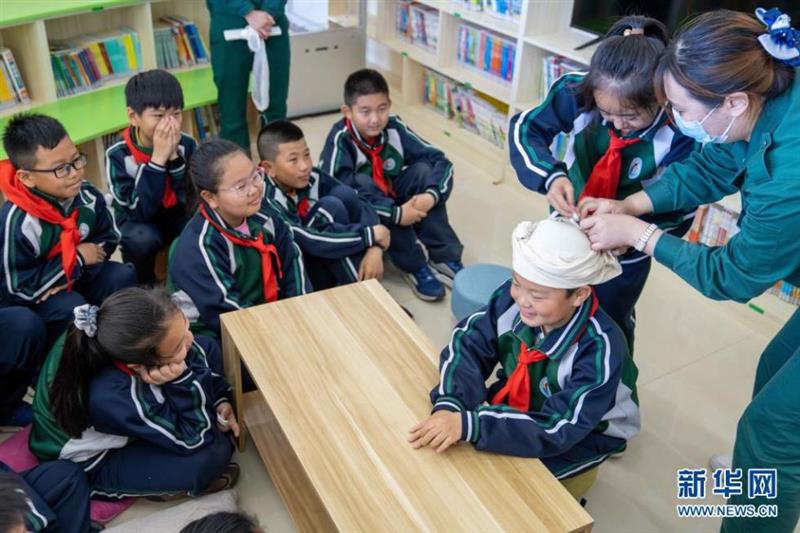 5月8日,河北省邢臺市任澤區(qū)直屬第一小學(xué)學(xué)生在學(xué)習(xí)急救技能。