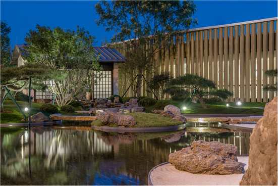 特別的是,作為城市里的公共藝術(shù)空間,這間24小時(shí)書房面向公眾免費(fèi)開放。大部分圖書都可以免費(fèi)借閱,不收押金,讀者憑信譽(yù)實(shí)現(xiàn)書籍的借閱與歸還。在書房里穿過一排排書柜,來到玻璃幕墻前,雅致的書齋庭院和靜寂的枯山水庭園映入眼簾。室內(nèi)燈火可親、書頁生香,室外的青松和白砂予人平靜,看久了,仿佛自己也化成光,墜入周圍的光之海。若是夜晚前來讀書,書房的工作人員會(huì)送上一碗免費(fèi)的暖胃湯羹。