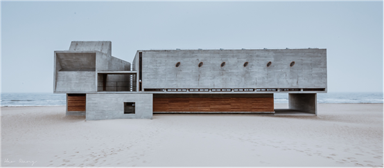 這是一座獨(dú)自佇立在海邊的圖書館,沒有車道和小徑,只能光腳踩著沙,一步一個(gè)腳印,走上幾百米才能抵達(dá)。