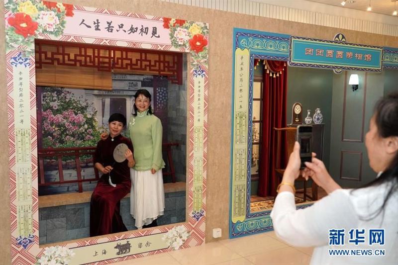 1月30日,市民在海上年俗風(fēng)情展上拍攝老上海風(fēng)情的團(tuán)圓照。新華社記者 任瓏 攝