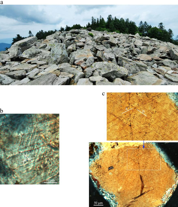 “小行星撞擊山頂后,引發(fā)了猛烈爆炸和靶區(qū)巖石拋射,形成了一個巨大的撞擊坑,塑造出‘前白雞’和‘后白雞’兩個新的山峰,改變了這座山峰原有的形態(tài)。”陳鳴說,現(xiàn)在分布在山頂和山坡上的石瀑就是小行星撞擊事件發(fā)生時,從坑內拋射到坑緣的砂巖和花崗巖等巖石碎塊的堆積。這次新發(fā)現(xiàn)破解了白雞峰“天石”的成因之謎。