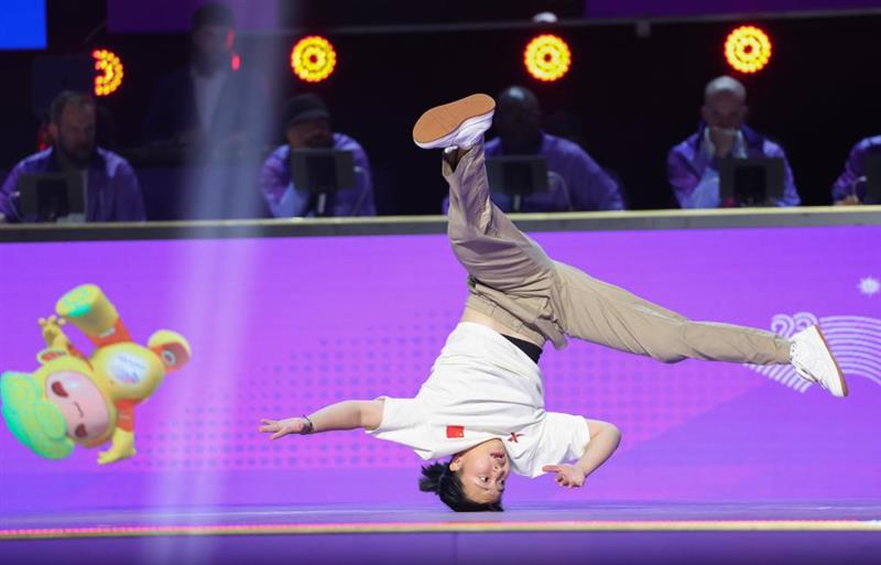 10月7日,中國選手劉清漪在霹靂舞女子組比賽中。新華社記者 王楷焱 攝