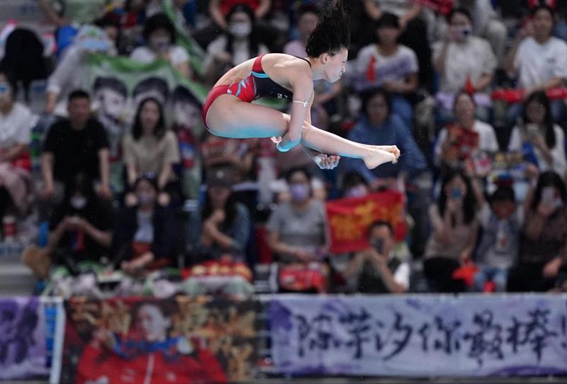 ??4月21日,陳芋汐在比賽中。新華社記者 李一博 攝