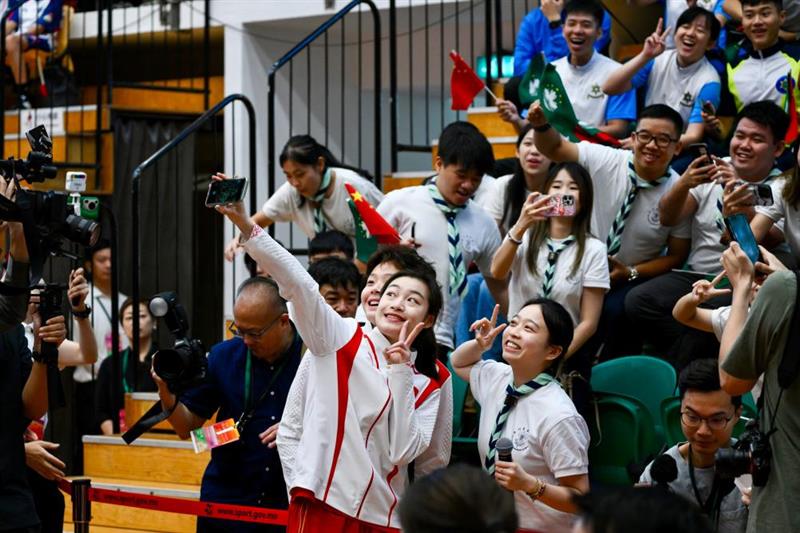 ??“我最想見的就是潘展樂和全紅嬋。”來自澳門童軍總會的張錦佩說,潘展樂的勇氣、全紅嬋的活力深深吸引著她,他們不畏困難、為國爭光,是自己學習的榜樣?!案兄x國家,感謝澳門,讓我能有這樣的機會。”