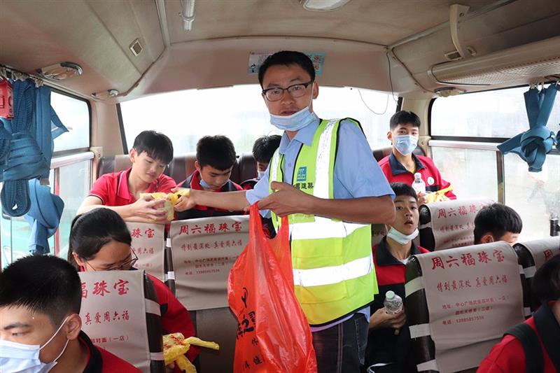 汛期期間,為保障木黃莘莘學(xué)子順利、安全參加中考,秀印二標(biāo)項(xiàng)目在木黃中學(xué)開展“防汛抗洪·中考護(hù)航”活動,護(hù)送334名考生和30名教師往返參加中考。一個月后的高考時,項(xiàng)目黨支部又組織高考愛心直通車,成立黨員送考志愿隊(duì)伍,護(hù)航當(dāng)?shù)乜忌图议L往返考場。