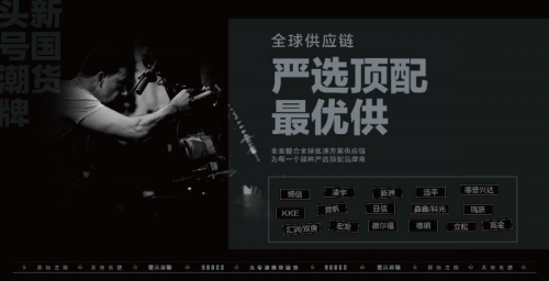 我要從全球供應(yīng)鏈嚴(yán)選頂配最優(yōu)供,以性能最優(yōu)解、質(zhì)量最過硬、運(yùn)營最效率為目標(biāo),全面整合全球優(yōu)質(zhì)方案供應(yīng)鏈,與行業(yè)頭號企業(yè)達(dá)成頭號合作伙伴關(guān)系,如高金、德爾福、新洲、日信、KKE、博信、馬牌HTD、FCC、NISSIN、凱邇必拓普等,為每一個部件嚴(yán)選頂配供應(yīng)商。