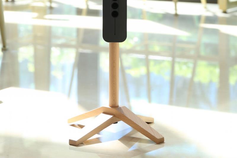 它的底部支架采用了來自法國天熱的山毛櫸木,經(jīng)過匠心打磨,柔和了機身的科技感,外觀剛?cè)岵诌m合后現(xiàn)代主義家居風格。
