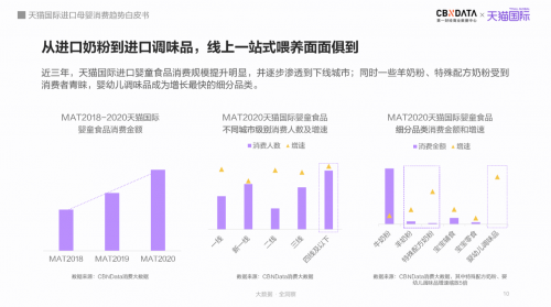 10月10日,第一財經商業(yè)數據中心(CBNData)聯(lián)合天貓國際發(fā)布《進口母嬰消費趨勢白皮書》(以下簡稱CBNData《報告》,依托CBNData 消費大數據,洞察線上進口母嬰行業(yè)在食、補、用、孕四大方面的消費趨勢。