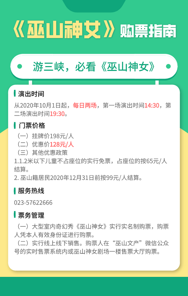 由湖南廣電原創(chuàng)的《巫山神女》室內(nèi)奇幻秀,通過(guò)現(xiàn)代創(chuàng)意的形式,講述了巫山神女的故事,還原了一個(gè)立體的、玄幻的、敢愛(ài)敢恨的瑤姬形象,融合了巫山美景、文化、物產(chǎn)等元素,震撼且感人。自10月1日公演以來(lái),受到了來(lái)自媒體、觀眾的諸多好評(píng)。未來(lái),《巫山神女》將作為巫山縣重點(diǎn)打造和推出的旅游產(chǎn)品,以每天兩場(chǎng)的頻率,持續(xù)上演。游三峽,必看《巫山神女》。無(wú)論觀劇之前,游客是否游覽過(guò)三峽,《巫山神女》的加入,都將讓旅途變成一次穿越千年的奇遇。