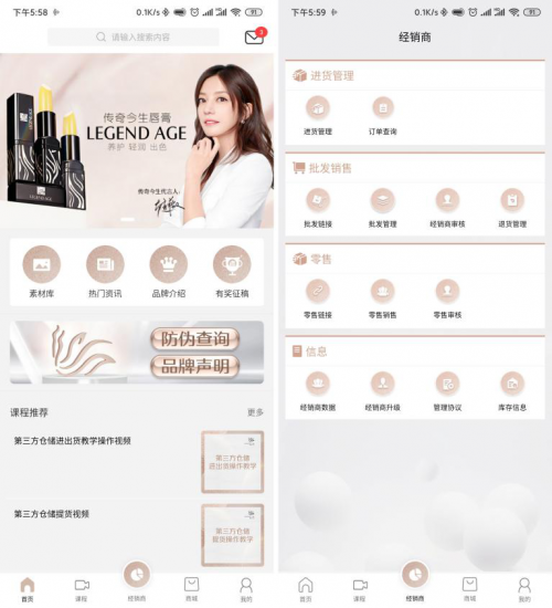 面對市場需求不斷擴大的形勢,為了輔助經(jīng)銷商做好市場管理工作,以規(guī)范統(tǒng)一的商業(yè)模式為消費者提供產(chǎn)品與服務(wù),2020年,傳奇今生推出了官方APP,其內(nèi)容涵蓋素材庫、熱門資訊、品牌介紹、防偽查詢、品牌聲明,也為經(jīng)銷商提供了進貨、銷售的管理工具。